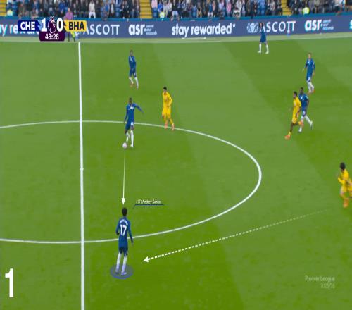 桑托斯的大力射門讓三笘薫有機(jī)會傳球給迭戈-戈麥斯,查洛巴別無選擇,只能在戈麥斯射門之前嘗試攔截。不出所料,他未能成功,被罰下場。