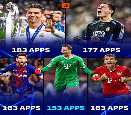 歐冠聯(lián)賽階段第三輪,拜仁慕尼黑主場對陣布魯日,諾伊爾首發(fā)出戰(zhàn),迎來歐冠生涯第153次出場,這使得他超越本澤馬,獨(dú)占?xì)W冠歷史出場榜第五位。