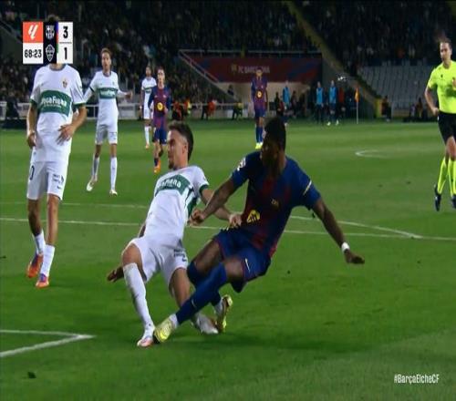 第42分鐘,埃爾切后場(chǎng)一腳傳遞,直接打穿巴薩的防守!拉法米爾拿球奔襲半個(gè)球場(chǎng),禁區(qū)內(nèi)推射遠(yuǎn)角得手,2:1!埃爾切扳回一城。補(bǔ)時(shí)階段,德容手術(shù)刀直塞,費(fèi)蘭托雷斯近在咫尺的射門(mén),被佩尼亞神奇撲出。